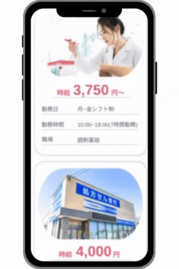 \モデル求人をスワイプで確認/
