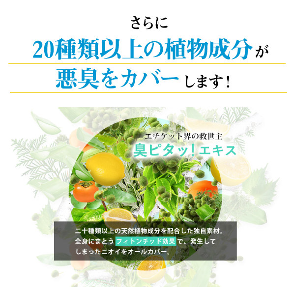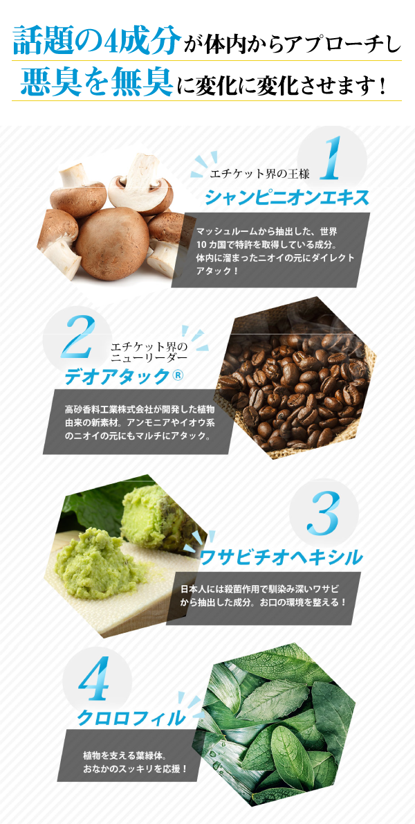 発生するニオイに内側からアプローチして無臭に変えてくれるケアサプリがあります!