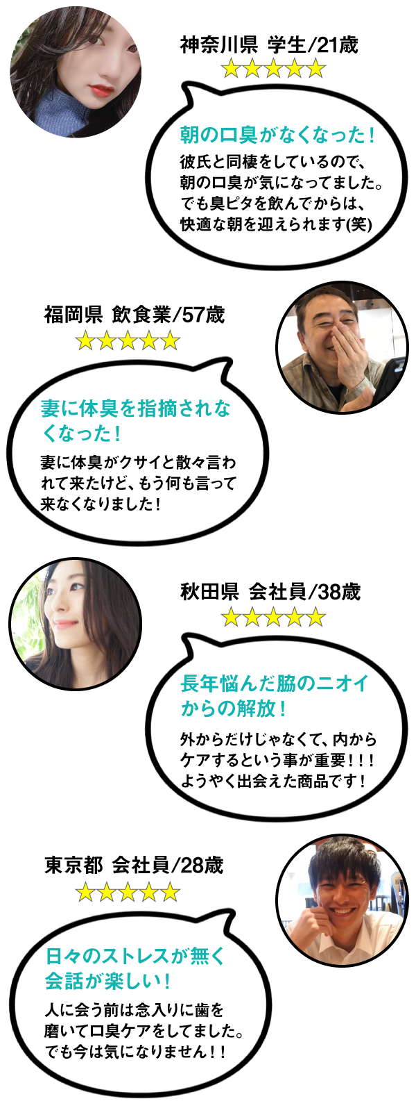ニオイに悩んでた私はこの商品で人生変わりました! なので一度でいいのでニオイに悩まされている方は、「臭ピタッ!」を試してみてほしいです!