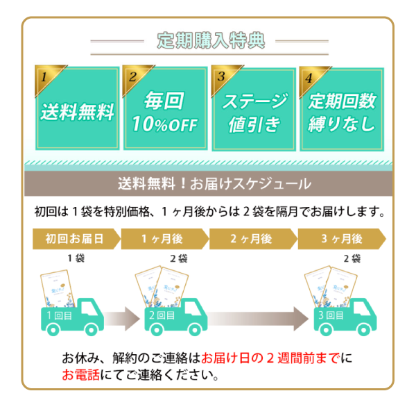 定期購入になりますが、縛りが無いのでご注文2回目からの解約が可能!