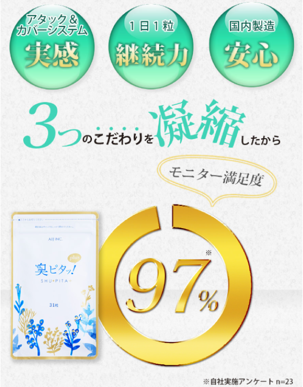 それで体の内側からケアしようと思い、ネットでの評価が良かった「臭ピタッ!」を購入しました!